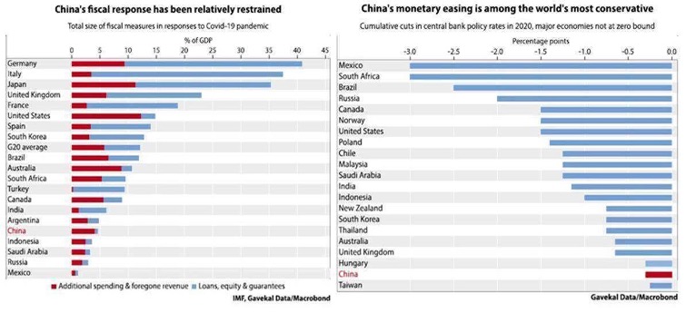 The Chinese authorities possess several instruments to address any liquidity concerns and often provides support to equity markets during periods of weakness. Notably, the People’s Bank of China (PBoC), the central bank of China, has been among the more conservative responders to the challenges posed by the pandemic. Research firm GaveKal has observed that China’s fiscal and monetary responses were amongst the most restrained.