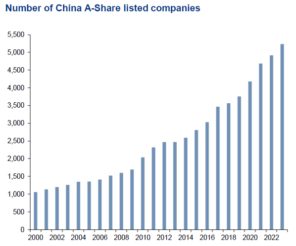 Over the past two decades, the number of companies listed on Chinese domestic exchanges has surged from 1,000 to well over 5,000. This stands in stark contrast to the major Western markets where “de-equitisation” has been the dominant trend. It ensures China A shares offer a good representation of the broader economy, which is particularly relevant with new businesses and industries being birthed by China’s push to modernise. It also means the stock market is becoming deeper and more liquid.