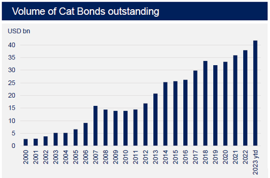 Increasing premiums is one of the primary ways for insurers to mitigate the heightened risks associated with climate change and catastrophic events. Cat bonds, with their typically short duration and annual renewal process, offer flexibility in adjusting the risk/reward ratio each year based on the latest risk models. This adaptability allows insurers and investors to incorporate evolving catastrophe risks into the valuation of Cat bonds whenever the need arises.