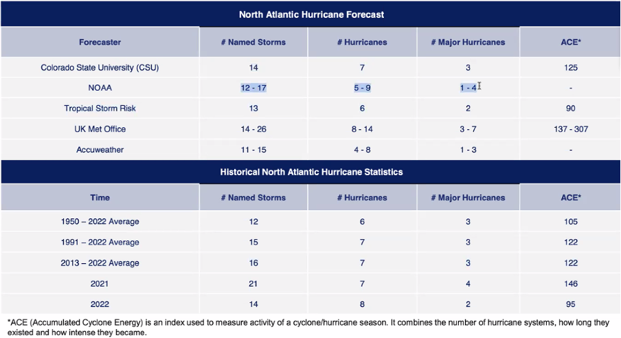 • Main risk is an adverse event – primarily hurricanes and earthquakes