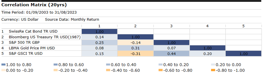 Importantly, weather risk behaves differently from market risk, making it rare for Cat bonds to weaken concurrently with losses in stock and bond markets. This underscores the robust diversification benefits of including Cat bonds in multi-asset portfolios.