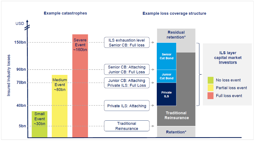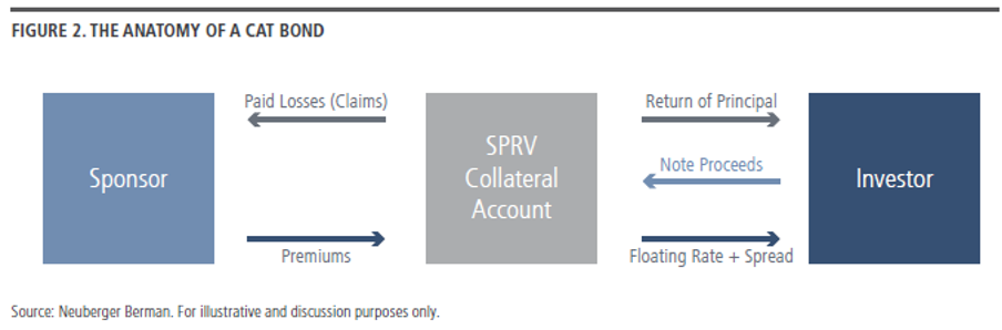 Cat bonds, structured in this manner, provide a mechanism for transferring catastrophic risk from insurance companies to the capital markets. Investors receive periodic income while taking on the potential for principal loss in the event of a catastrophe. This structure is designed to align the interests of investors, insurance companies and the broader market in managing and mitigating the impact of catastrophic events.