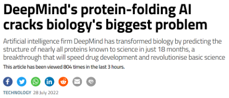 In 2022, DeepMind leveraged AI to map and subsequently open-source (i.e. make available to anyone) the complete catalogue of protein structures. Protein structures refer to the 3D arrangements of atoms within a protein molecule. These structures are fundamental to new drug design since a protein’s biological activity and its interactions with other molecules are strongly influenced by its unique structure.