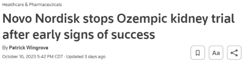 In October 2023, Novo Nordisk announced it would prematurely conclude its trial of Ozempic for the treatment of kidney failure due to clear and promising indications of success.