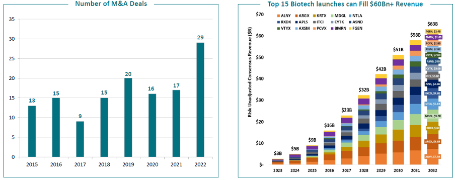 Per this Jefferies’ research, and given the outlook for continue growth in Biotech revenues over the coming decade, this momentum in M&A activity is unlikely to wane.