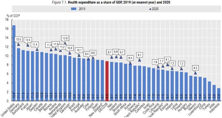 Notably, the rate of growth in healthcare spending in countries like China significantly surpasses that of developed economies, as demonstrated in this chart provided by Cowen.