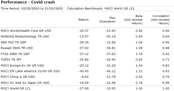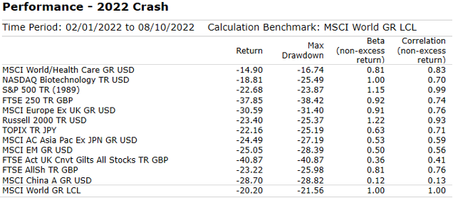 Perhaps it is not surprise that Healthcare and Biotech stocks fell by far less than most headline stock markets during the 2020 “Covid crash”.