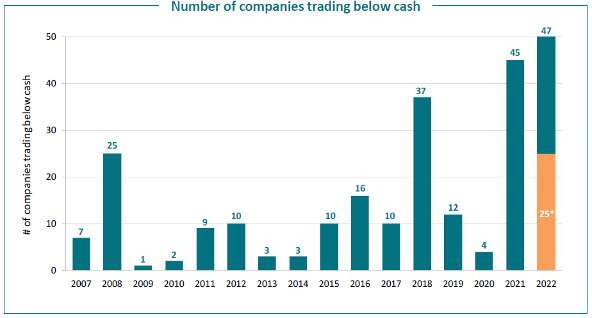 Furthermore, the fact that a record number of biotech companies currently have cash balances greater than their market capitalisations is an interesting development in the sector. It suggests they are well positioned to weather any economic or market challenges and have ample resources to fund R&D initiatives.