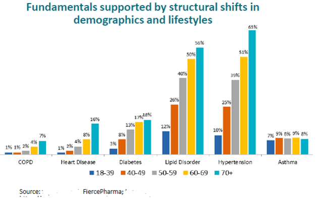 • The ‘illderly’: An aging global population is directly linked to a mounting incidence of disease and declining health. This surge is fuelling a rise in total healthcare expenditure, especially in emerging economies, where an expanding middle class is gaining substantial access to modern healthcare on a significant scale for the first time.
